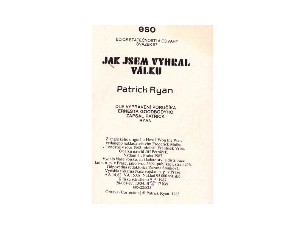 dle vyprávění poručíka Ernesta Goodbodyho zapsal Patrick Ryan, edice ESO, brožovaná, dobrý stav, překlad František Vrba, 256 stranDoplňkové parametry