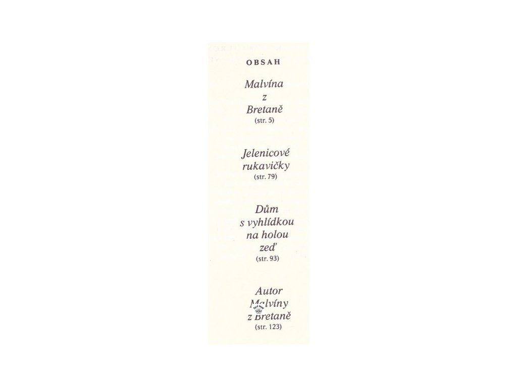 edice Máj, plátěná vazba s přebalem, dobrý stav, obsahuje: Malvína z Bretaně, Jelenicové rukavičky, Dům s vyhlídkou na holou zeď, ilustroval Jindřich Ulrich, 128 stranDoplňkové parametry
