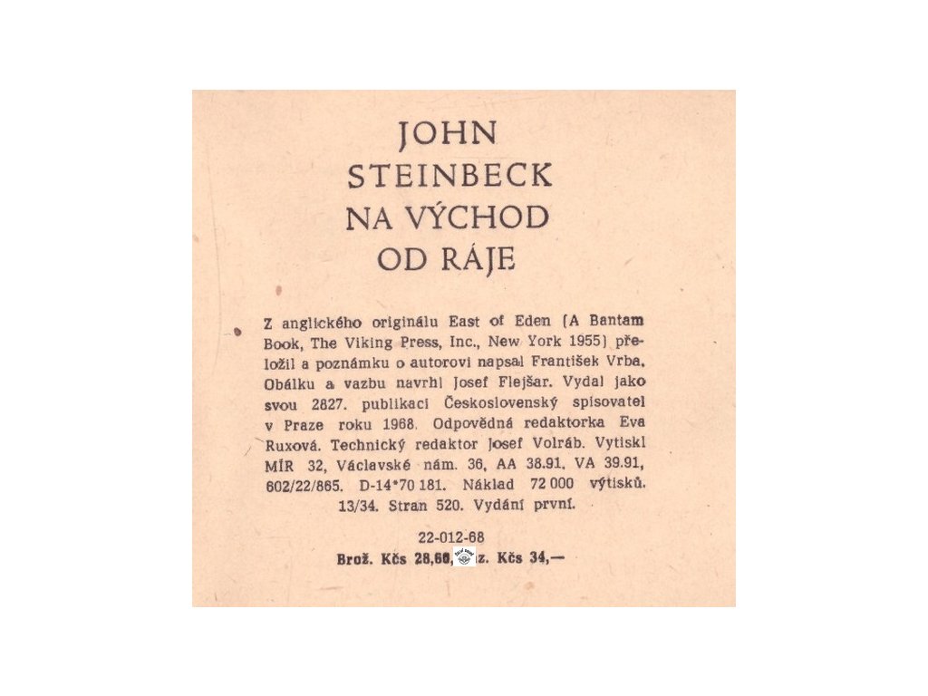 NA VÝCHOD OD RÁJE Steinbeck John