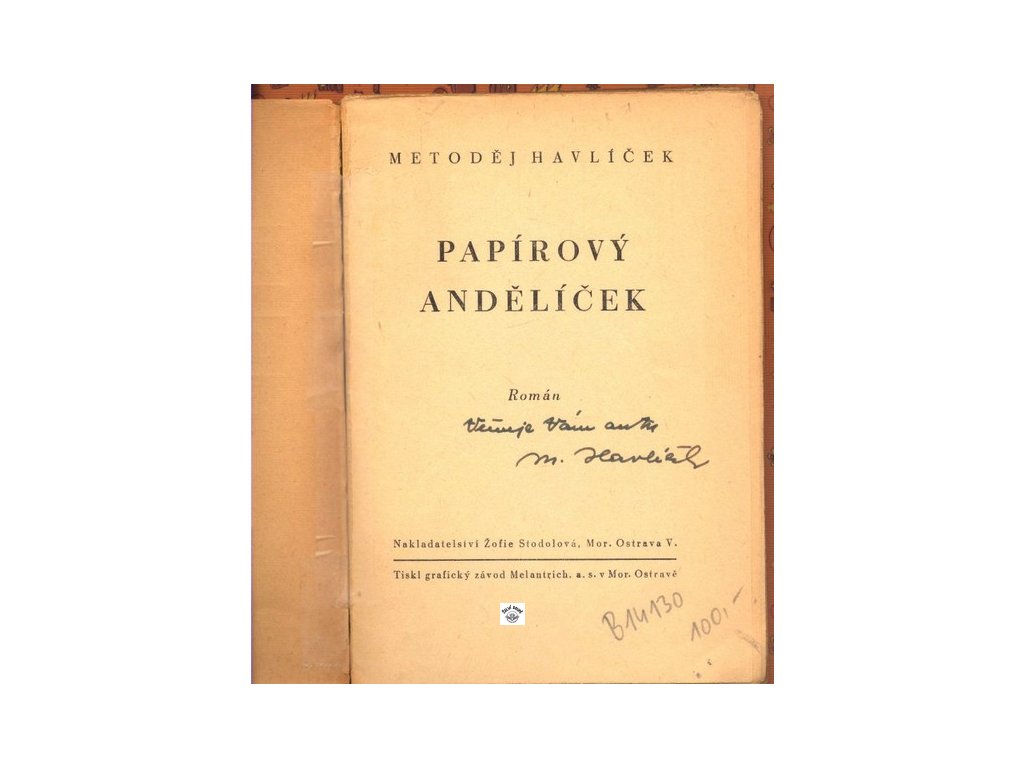 PAPÍROVÝ ANDĚLÍČEK - PODPIS AUTORA Havlíček Metoděj
