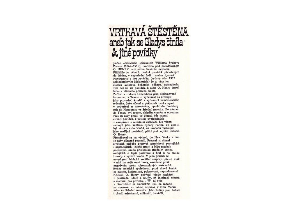 VRTKAVÁ ŠTĚSTĚNA ANEB JAK SE GLADYS ČINILA A JINÉ POVÍDKY O'Henry
