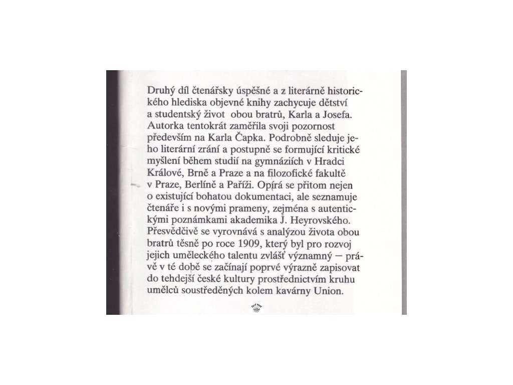 o Josefu Čapkovi a Karlu Čapkovi, edice Česká proza, plátěná vazba, s přebalem, výtisk z knihovny, ale přesto pěkný stav, 374 stranyDoplňkové parametry