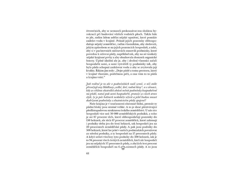 Jak se po roce 1989 změnil český venkov a kterým výzvám čelíme v souvislosti s vysychající krajinou? Nejen o těchto otázkách přemítá Daniel Pitek, soukromý zemědělec, lesník, aktivista a autor nesmírně populárního blogu. Kvalita půdy, ochrana vodních zdrojů, klimatické změny, stav českých lesů, dostupnost potravin – to vše jsou témata, která jsou aktuálnější než kdy dřív. Pokud chcete skutečně pochopit zákonitosti přírody i moderního zemědělství, máte nyní jedinečnou příležitost.Doplňkové parametry
