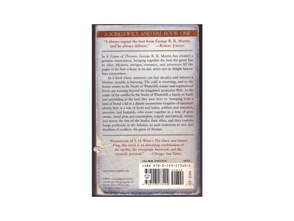 A song of Ice and Fire: Book 1., in English, fantasy, paperback, book cover in worse condition, back torn, entire book has dog-earns, book block still in good condition, 808 pages (with appendix around 850)Doplňkové parametry