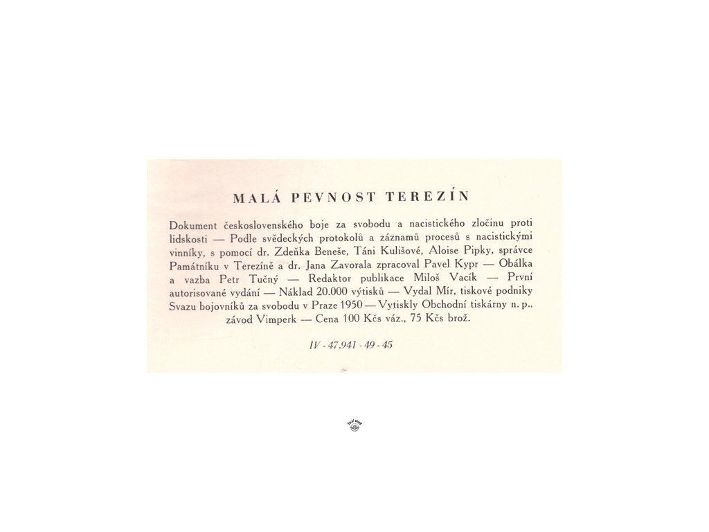 Dokument československého boje za svobodu a nacistického zločinu proti lidskosti, papírovoplátěná vazba, bez přebalu (?), běžný stav, 176 stranDoplňkové parametry