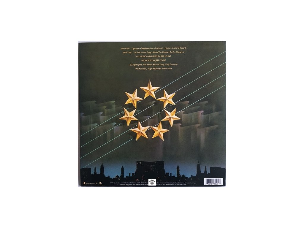 180gr heavy weight vinyl, vnitřní přebal s fotem, info a texty, embosovaný (plastický) přebal, track list: A1 Tightrope 5:00 / A2 Telephone Line 4:38 / A3 Rockaria! 3:12 / A4 Mission (A World Record) 4:24 /// B1 So Fine 3:55 / B2 Livin' Thing 3:31 / B3 Above The Clouds 2:16 / B4 Do Ya 3:45 / B5 Shangri-La 5:34Doplňkové parametry