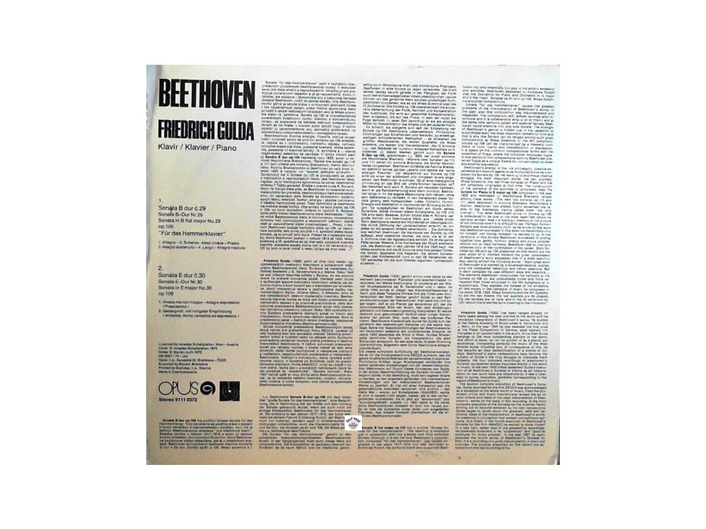 málo hrané, dobrý až hezký stav, obsahuje: Sonate nr. 29 B-dur op. 106, Sonate nr. 30 E-dur op. 109, Friedrich Gulda - klavírDoplňkové parametry