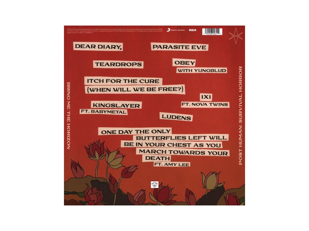 insert s texty a info, track list: A1 Dear Diary / A2 Parasite Eve / A3 Teardrops / A4 Obey /// B5 Itch For The Cure (When Will We Be Free?) / B6 Kingslayer / B7 1x1 / B8 Ludens / B9 One Day The Only Butterflies Left Will Be In Your Chest As You March Towards Your DeathDoplňkové parametry