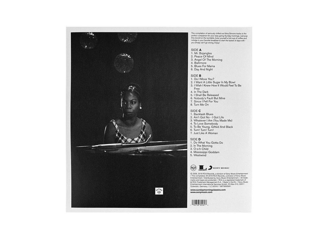 gatefold, reklamní insert, track list: A1 Mr. Bojangles 4:58 / A2 Peace Of Mind 2:40 / A3 Angel Of The Morning 3:29 / A4 Baltimore 4:40 / A5 Blues For Mama 3:56 / A6 Day And Night 2:31 /// B1 Do I Move You? 2:45 / B2 I Want A Little Sugar In My Bowl 2:31 / B3 I Wish I Knew How It Would Feel To Be Free 3:09 / B4 In The Dark 2:53 / B5 I Shall Be Released 4:00 / B6 Nobody's Fault But Mine 2:59 / B7 Since I Fell For You 2:44 / B8 Turn Me On 2:24 /// C1 Backlash Blues 2:29 / C2 Ain't Got No - I Got Life 2:08 / C3 Whatever I Am (You Made Me) 3:03 / C4 To Love Somebody 2:38 / C5 To Be Young, Gifted And Black 2:50 / C6 Turn! Turn! Turn! 2:25 / C7 Just Like A Woman 4:52 /// D1 Do What You Gotta Do 2:58 / D2 In The Morning 2:41 / D3 O-o-h Child 3:16 / D4 Mississippi Goddam 6:53 / D5 Westwind 8:52Doplňkové parametry