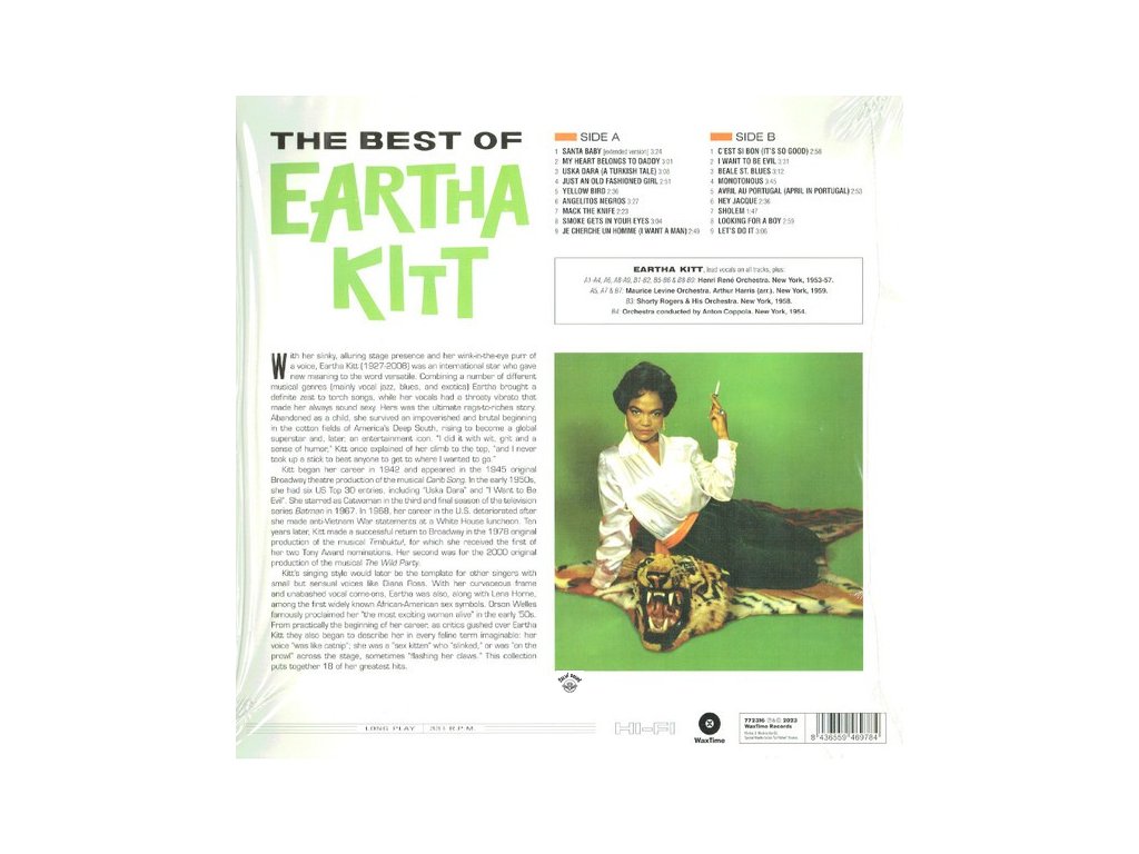 180gr heavy weight vinyl, track list: A1 Santa Baby (Extended Version) 3:24 / A2 My Heart Belongs To Daddy 3:01 / A3 Uska Dara (A Turkish Tale) 3:08 / A4 Just An Old Fashioned Girl 2:51 / A5 Yellow Bird 2:36 / A6 Angelitos Negros 3:27 / A7 Mack The Knife 2:23 / A8 Smoke Gets In Your Eyes 3:04 / A9 Je Cherche Un Homme (I Want A Man) 2:49 /// B1 C'est Si Bon (It's So Good) 2:58 / B2 I Want To Be Evil 3:31 / B3 Beale St Blues 3:12 / B4 Monotonous 3:46 / B5 Avril Au Portugal (April In Portugal) 2:53 / B6 Hey Jacque 2:36 / B7 Sholem 1:47 / B8 Looking For A Boy 2:59 / B9 Let's Do It 3:06Doplňkové parametry