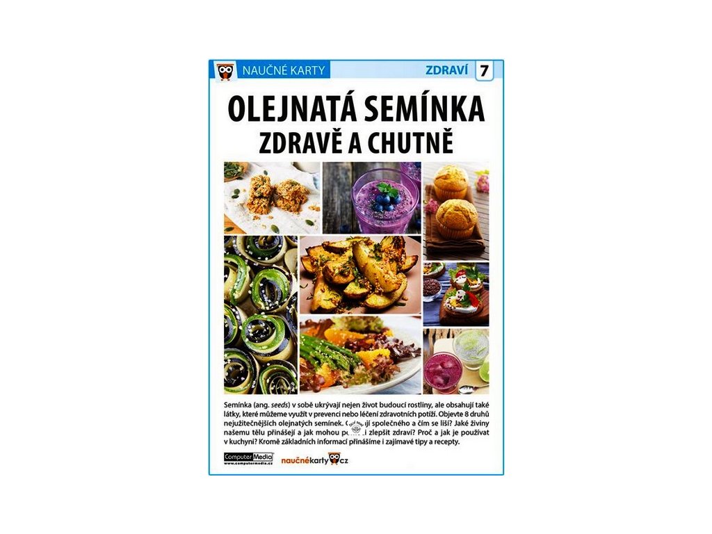 Dozvíte se, proč jíst dýňová, slunečnicová, sezamová, ale třeba také lněná, maková, hořčičná, konopná nebo chia semínka, a můžete se inspirovat zajímavými tipy i recepty na chutné využití semínek v kuchyni. Naučné karty, zdraví, číslo 7, skládačka, lamino, 8 stran.Doplňkové parametry
